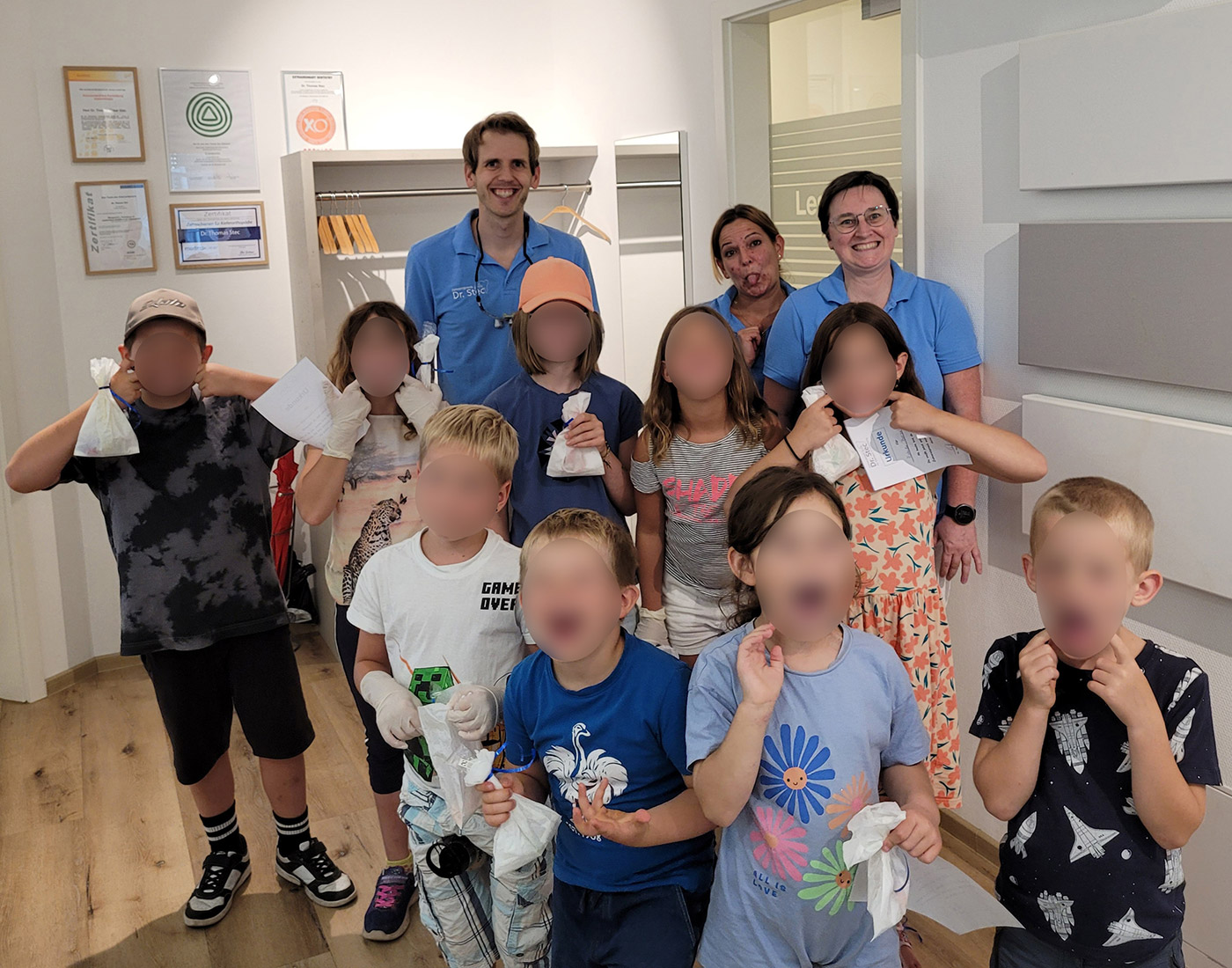 Zum Abschluss erhielten alle stolzen „Zahnprofis“ eine Urkunde und eine Überraschungstüte – und nahmen nicht nur ein Lächeln, sondern auch die Erkenntnis mit nach Hause, dass ein Zahnarztbesuch gar nichts ist, wovor man sich fürchten muss!